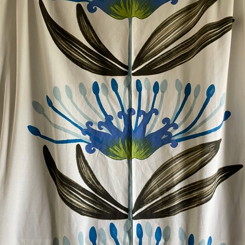 Uusi, käyttämätön Vallila Interiors, Kaktuskukka. tukeva, ei ommeltu kangas verhoksi, pöytäliinaksi... Ihanat, vahvat värit. Kamera hieman "syö värejä! Tanja Orsjoki 2005. Lähetän sovitusti.
