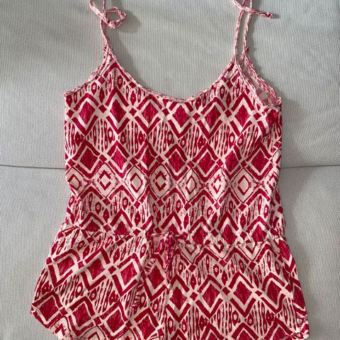 Myyn haalarin, koko M. Merkki Z.i.p. Haalarissa on säädettävät olkaimet ja vyötäröllä koristenyöri. 100% viskoosia, miellyttävän tuntuinen päällä ja sopii myös helteelle. Myyn, koska itselle jäänyt isoksi. Haalarissa on joitakin ”langan pakoja” joista jälkiä(katso viimeinen kuva.) haalari on kuitenkin täysin ehjä tästä huolimatta. Voi olla, että olleet aina mutta nyt vasta huomasin kuvatessa. Ei pistä silmään käytössä.