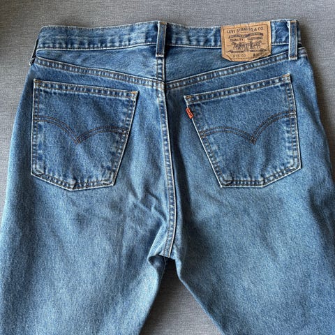 Myydään hyväkuntoiset Leviksen 615 farkut vuodelta -98, valmistettu Iso-Britanniassa. Farkuissa hieno tummansininen väri, jossa mukavaa ajantuomaa kulumaa. Farkut ovat ehjät ja tahrattomat. Lahkeensuissa sekä haarasaumassa ajalle ominaista rispaantumista, mutta ei reikiä.