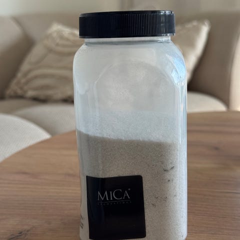 Ruskea koristehiekka n 2,5dl kauniissa Lene Bjerre rasiassa 8x8cm.