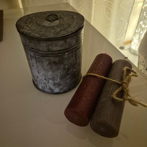 Osassa kynttilämassaa jäljellä, ehjät. Askarteluun, säilytykseen. 2 € kpl. 6 klp:tta.