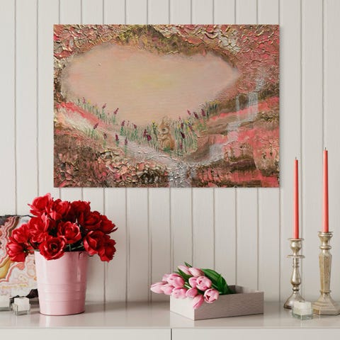 Abstrakti figuurimaalaus, jossa on vaaleanpunaisia ja monivärisiä sävyjä, kuten vaaleanpunaista, pinkkiä, sinistä, vihreää ja keltaista. Teos on suorakaiteen muotoinen ja sopii seinälle ripustettavaksi sisustuselementiksi.