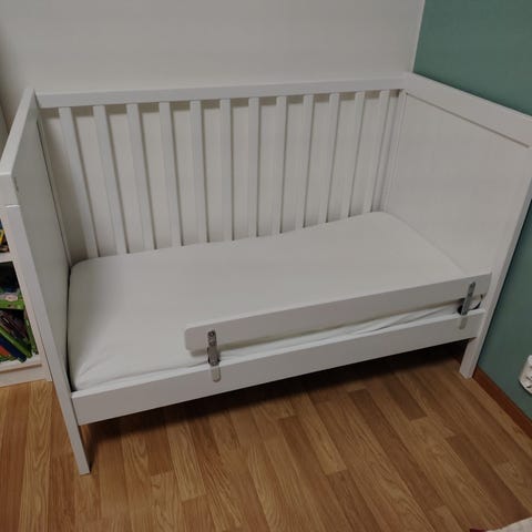 Patjassa pientä tahraa, jotai ei ole yritetty pestä. Patjanpäällinen irrotettavissa. Reunoissa pieniä huomaamattomia kolhuja, jotka tulleet muuttaessa.