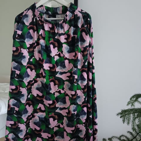 Musta pitkä, kapea hame. Ehjä ja tahraton, moitteeton kunto. Materiaali 100% polyesteri. Vyötärönauha, takana nappi ja vetoketju, keskellä takana halkio, täysin vuorotettu hame. Vy 70cm, pituus 85cm.