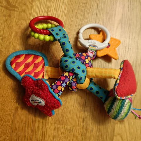 Lamaze merirosvopehmo vauvalelu. Monivärinen pehmolelu, jossa on useita erilaisia materiaaleja ja pintoja vauvan aistien stimuloimiseksi. Lelussa on useita lonkeroita, joissa on erilaisia tekstuureja ja värejä, sekä muovisia osia, kuten rengas ja helistin, joita vauva voi tarttua ja ravistella. Sopii vauvoille motoristen taitojen ja tarttumisen harjoitteluun sekä katseltavaksi ja tunnusteltavaksi.