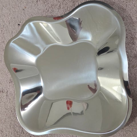 Iittala Alvar Aalto Collection tarjoiluvati. Aallon muotoon suunniteltu tarjoiluastia, materiaali kiiltävä teräs. Soveltuu esimerkiksi tarjoiluun ja kattaukseen. Mukana alkuperäinen pakkaus ja puhdistusliina kuvien mukaisesti.