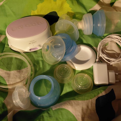 Myydään sähkökäyttöinen Philips Avent -rintapumppu. Toimii moitteettomasti, osat steriloitu. Pari silikoniosaa hieman kellastuneet (näkyy kuvassa), uusia saatavilla erikseen. Tarkemmat tuotetiedot täällä: https://www.philips.fi/c-p/SCF395_31/saehkoekaeyttoeinen-rintapumppu