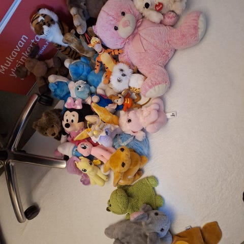 Disney pehmolelut Pluto ja vihreä dinosaurus. Pehmolelut sopivat lasten leikkeihin tai sisustuselementeiksi lastenhuoneeseen. Materiaali on pehmeää kangasta ja täytettä, jotka tekevät leluista miellyttävän tuntuisia käsissä ja halattavaksi. Myydään yhdessä kuvassa näkyvänä parina. Dinossa vaaleita jälkiä tussia, Pluto hyvässä kunnossa. Vähähajusteinen kissatalous.