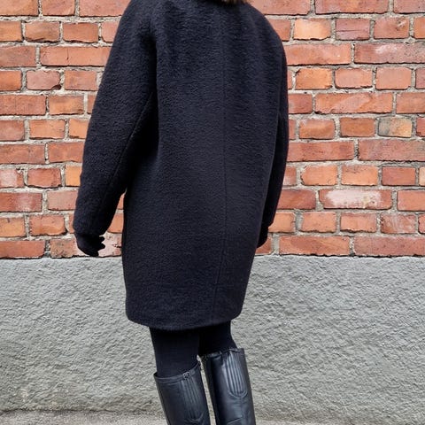 Takissa on monivärinen, ruudullinen kuosi, jossa sävyinä muun muassa harmaa, punainen ja musta. Materiaalina on villa (70%) ja polyesteri (30%). Mallissa on kaulus ja etupuolella taskuja, sekä povitasku. Sopii käytettäväksi ulkotakkina viileämpiinkin säihin.
