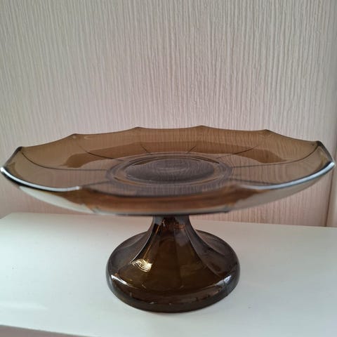 Kakkulautanen, lasinen jalustallinen, soveltuu esim. leivonnaisten ja kakkujen tarjoiluun.