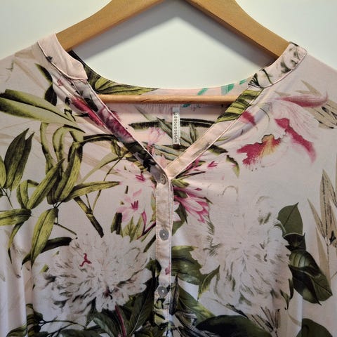 Materiaalina puuvilla 64,5 %, lisäksi polyester ja elastan.