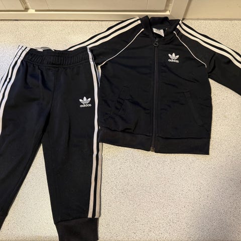 Myydään tummansiniset Adidaksen verkkarit. Kokolappu 92 (18-24kk), mutta sanoisin enemmän 86.