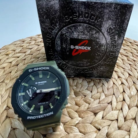 Casio G-Shock miesten rannekello. Kellossa on musta runko ja ranneke sekä kultasävyinen kellotaulu. Malli on digitaalisen ja analogisen näytön yhdistelmä, jossa näkyy sekä aika että päivämäärä. Kello on suunniteltu kestämään iskuja ja kovaa käyttöä. Ranneke on muovia/hartsia ja takakansi ruostumatonta terästä. Sopii miehille arki- ja vapaa-ajan käyttöön.Nyt halvalla,koska minulle liian paljon toimintoja joita en osaa käyttää.Lähetys kulut ostajalle,Tästä hinnasta ei voi enään tinkiä.Muutenkin monta sataa halvemmalla lähtee.