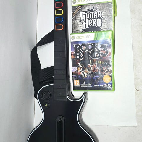 Toimiva langallinen Rock Band kitara sekä Rockband 2 peli Xbox360:lle.