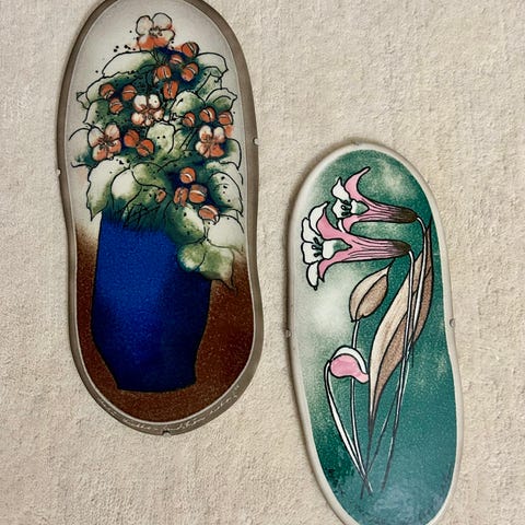 Högbacka Keramiikan valmistamia keraamisia seinälaattoja.