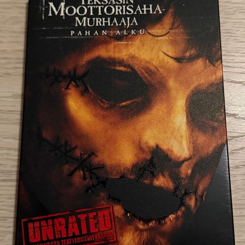 "Teksasin moottorisahamurhaaja" 1974 & 1986. Ohjaus: Tobe Hooper. Suom. tekstitykset. Levyissä pientä jäljeä - ei vaikuta toistoon.