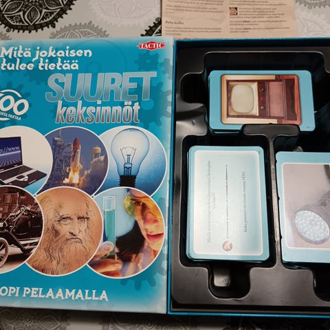 Huojuvan tornin pakkaus kärsinyt vuosien varrella, mutta palikat hyvässä kunnossa. Samoin pelikorttien pakkaukset kärsineet, mutta kortit hyvässä kunnossa.