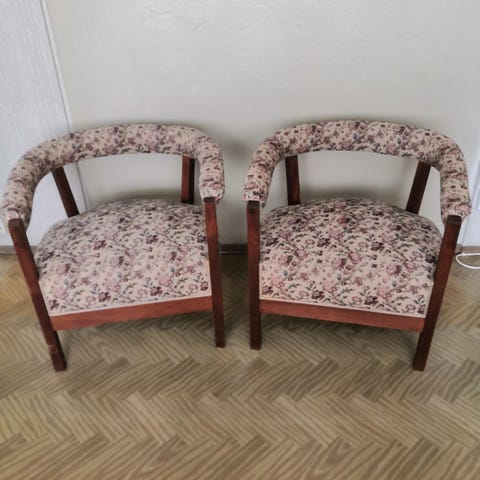 Vanhat hyväkuntoiset nojatuolit. Kotimainen laatu. Jousirakenne näyttää vahvalta. Hinta yhteensä 130€.