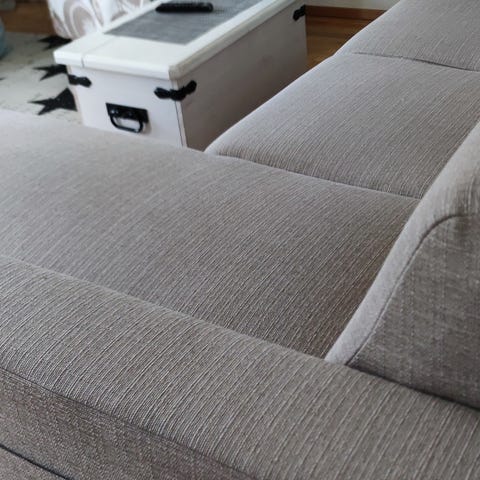 Kuvanmukainen sohva irtotyynyillä myynnissä. Ehjä,eikä ole eläintalous, (vieraina käynyt eläimiä.)