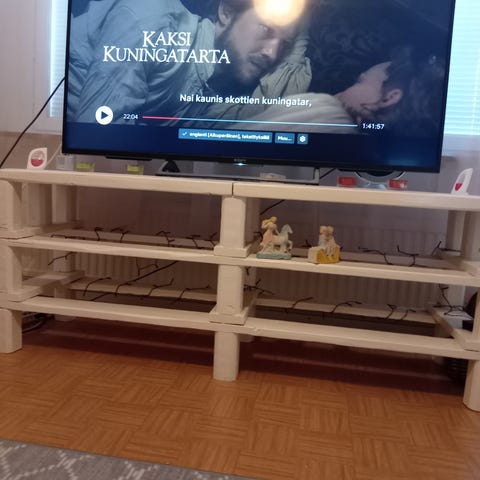 Lyngvikin uudenveroinen TV-taso. Ostettu 12/2024. Korkeus 50cm, syvyys 40cm, leveys 120cm. 2 tamburovea.