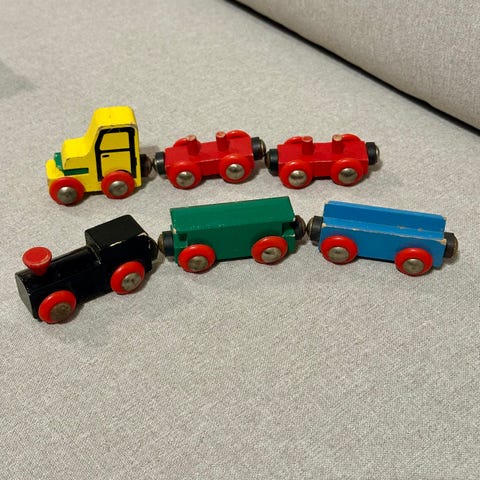 BRIO puinen lelujuna vaunulla ja puukuusilla