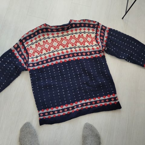 Kuviollinen villaneule, käyttämätön. Kai-kai 65, olka-helma 72cm. Pk 7.90