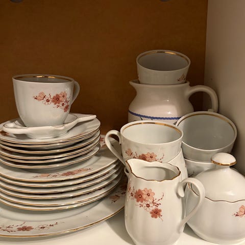 6 kaksikorvaista liemikulhoa. Halkaisija n. 12 cm, korkeus n. 5,5 cm. Pohjassa lukee Eschenbach.