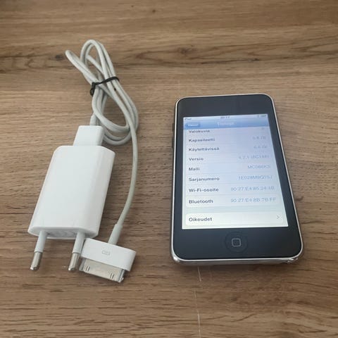 Toimiva laite resetoituna uutta käyttäjää varten. Näyttö halki, mutta ei vaikuta laitteen toimintaan.