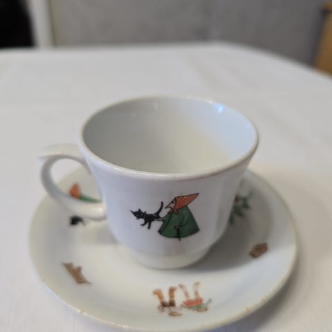 Myydään Arabian Peukaloinen kahvikuppi ja lautanen.