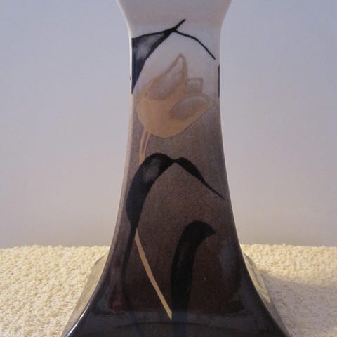 Arabian vanhaa tuotantoa oleva kynttilänjalka, korkeus 3,5cm, pohjan halkaisija 3cm ja päältä 6,2cm, kynttiläosan halkaisija n. 1cm.