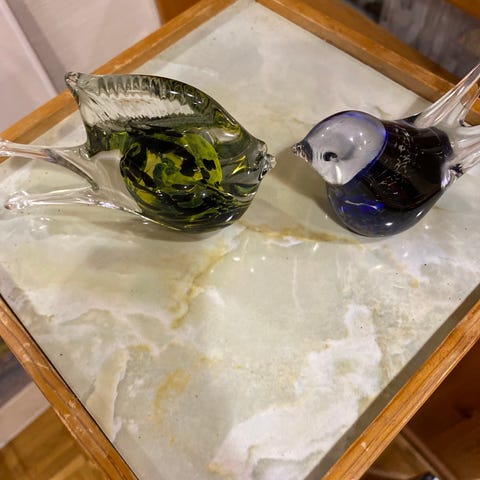 Myydään sekalainen kokoelma pieniä ja kauniita lasilintuja. Kahdessa Tuusulanjärven kristallin tarrat pohjissa, muissa ei merkintöjä.