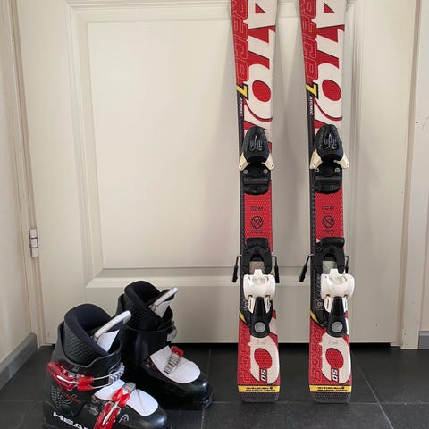 Myydään hieno lasten laskettelupaketti: Rossignol P Carv sukset sekä kunnon 4 solkiset monot Fischer Raccer 22,5/ kenkäkoossan 35