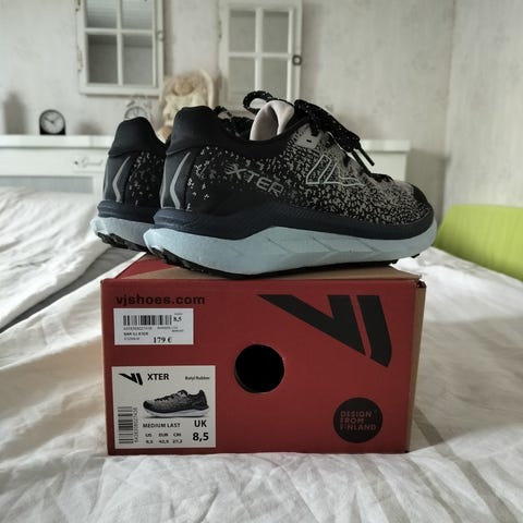 Tästä uudet huippukengät poluille. Kenkiä testattu parkkipaikalla ja liian isoiksi todettu.