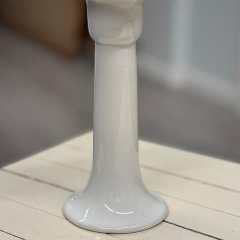 Arabia Arctica kynttilänjalka valkoista posliinia. Kapea, suora jalka ja leveä, pyöristetty alaosa tuovat tukea kynttilälle. Sopii tavalliselle pöytäkynttilälle ja käyttöön esimerkiksi kattauksissa tai sisustuselementtinä. Pohjassa Arabia Finland Arctica -leima. 18,5 vm.