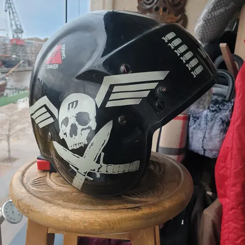 Marushin umpikypärä moottoripyöräkäyttöön. Kypärä on kokokasvoinen malli kirkkaalla visiirillä. Väritys on pääosin musta, harmaa ja punainen, ja pinnassa on koristekuvioita. Sisäosa on vaalea, pehmustettu ja hengittävä, ja leukahihnassa on lukitusmekanismi. Kypärä sopii moottoripyöräilyyn tai muuhun vastaavaan käyttöön, jossa tarvitaan suljettua suojakypärää. Koko SX