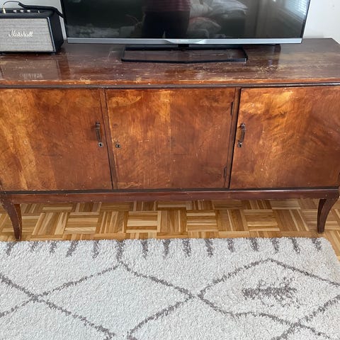 Maalattu täyspuinen lipasto. Vetimet vaihdettu, mutta osa rikki/ liian köykäisiä puiseen laatikkoon.