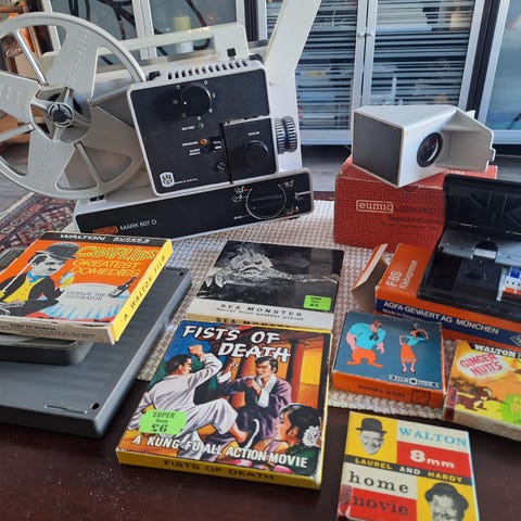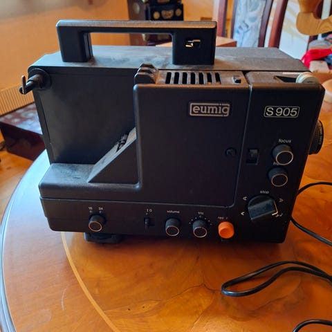 Vanha Super 8 -filmiprojektori (elokuvaprojektori), eli laite, jolla voi näyttää Super 8 -filmiä.