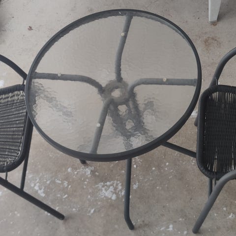 Parveketuoli, jossa metallirunko ja punottu istuin sekä selkänoja. Käsinojat ovat osittain puuta. Väri on ruskean sävyinen punos ja tumma runko. Sopii ulkokäyttöön esimerkiksi parvekkeelle tai terassille. Kuvissa näkyy myös erillinen puinen, soikea taittopöytä, joka voidaan myydä yhdessä tuolin kanssa tai erikseen myyjän ilmoituksen mukaan.