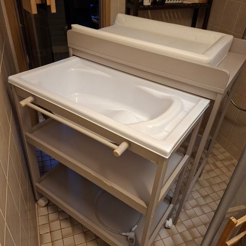 Beemoon hoitopöytä, jossa alla amme. Ostettu uutena ja ollut käytössä 6kk.