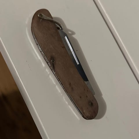 Rautainen käsityökalu, jota on käytetty lyijyhaulien valmistamiseen. Työkalussa on pihtejä muistuttava rakenne, jossa kaksi vartta ja puristuspää. Soveltuu esimerkiksi vanhana käsityö- tai metsästysaiheisena esineenä kokoelmiin tai rekvisiitaksi. Mekanismi toimii. Tullut perintönä.
