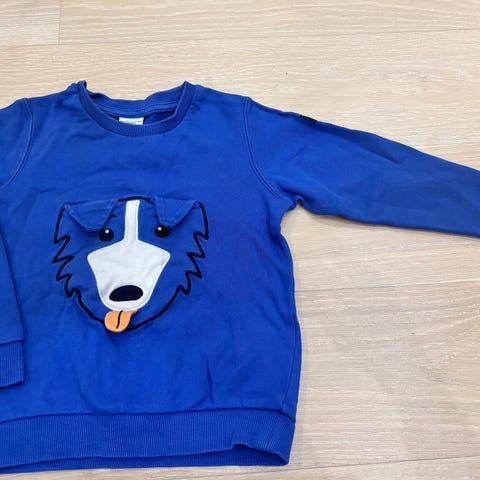 Meleerattu harmaa, yhdellä lapsella käytössä ollut Popin collegepaita. Kokomerkintä on 110, mutta minusta tämä on selvästi pienempi ja vastaa enemmän kokoa 104. Neulos on aika tiukkaa, joten ei ole kaikkein venyvin paita esim päälle pukiessa, ja siksikin menee mielestäni paremmin kokoa pienemmälle ihmiselle. Hyvä kunto, ei ole nukkaa, kulumaa tms. ollenkaan.