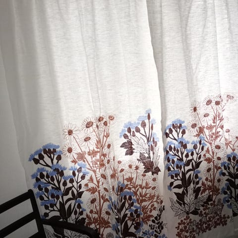 Täyspitkä upea ja hyväkuntoinen retroverho, hieman valoa läpipäästävä kangas