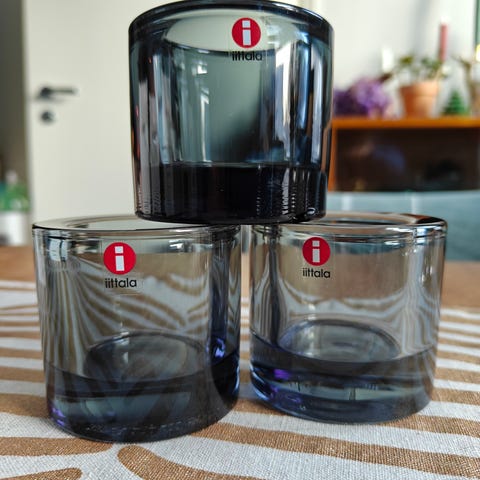 Kolme tummansinistä Kivi-tuikkua. Nouto Noljakasta tai postitus.