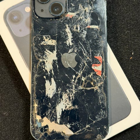 Rungossa selkeää käytön jälkeä mutta kaikki lasit on ehjiä ja puhelin on täysin toimiva sekä putsattu kaiuttimia myöten.