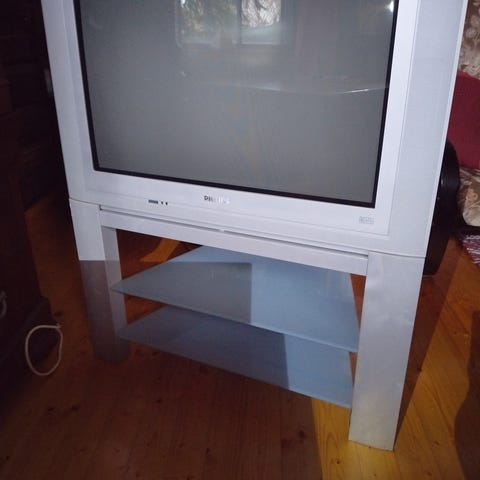 Samsung taulutelevisio, musta. Näytön koko arviolta noin 32 tuumaa. Televisiotaso musta terästä ja lasia, lisäkaiuttimet ja DVD karaoke soitin.