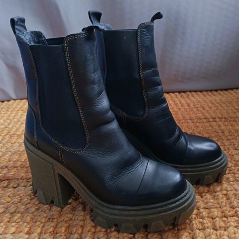 Käyttämättömiksi jääneet platform nahkakengät, Koko 39. Näillä kengillä tulee pituutta lisää n 5-6cm. Ainoastaan sovitetut sisätiloissa.