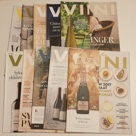 Myynnissä on useita vuosikertoja VIINI-lehteä.
