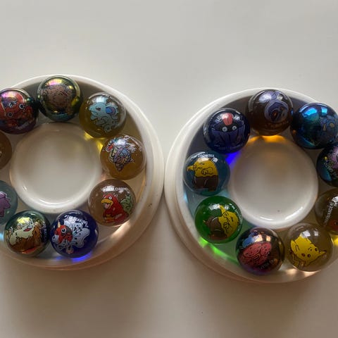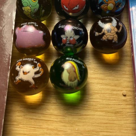 Pokemon keräilykuulat holografisilla hahmokuvilla. Pakkauksessa viisi kuulaa, joissa eri Pokemon-hahmot. Sopivat keräilyyn tai leikkeihin. Materiaali todennäköisesti muovia tai vastaavaa kovaa materiaalia, pinta kiiltävä ja monivärinen.
