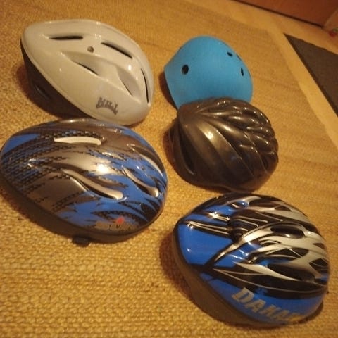 Myydään elämää nähnyt, pyöräilykäytössä ollut kypärä seuraavalle hurjapäälle. Kypärässä gopro pidike kiinni.
