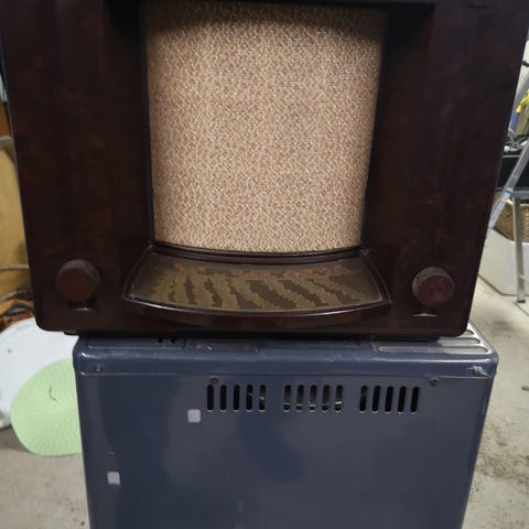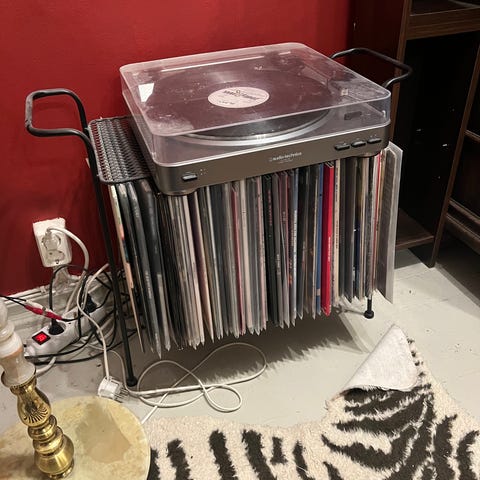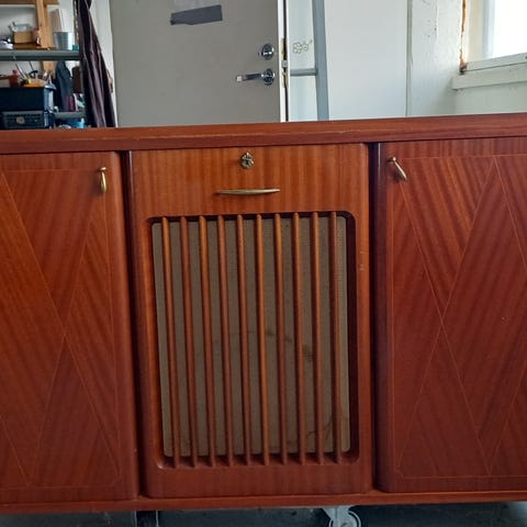 Vanha, mutta ikäisekseen todella siistikuntoinen stereoräkki.